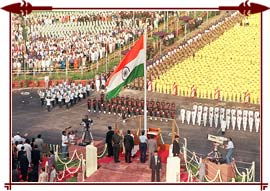 programs also characterize the Independence Day celebrations in India.On the Independence Day functions are organized in each and every school of the country and flag hoisting takes place, along with the singing of the National anthem. However, the grandest celebrations take place in the capital city of India, New Delhi. The festival starts with the address of the Prime Minister of India to the nation from ramparts of the Red Fort. Thereafter, Independence Day festival at Delhi proceeds forward with the flag hoisting ceremony by the Prime Minister of India. The Independence Day Parade by the personnel of the police and armed forces follows soon after.